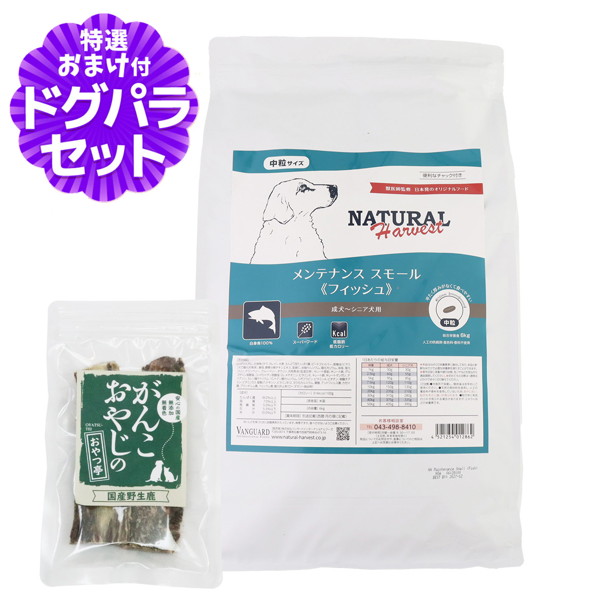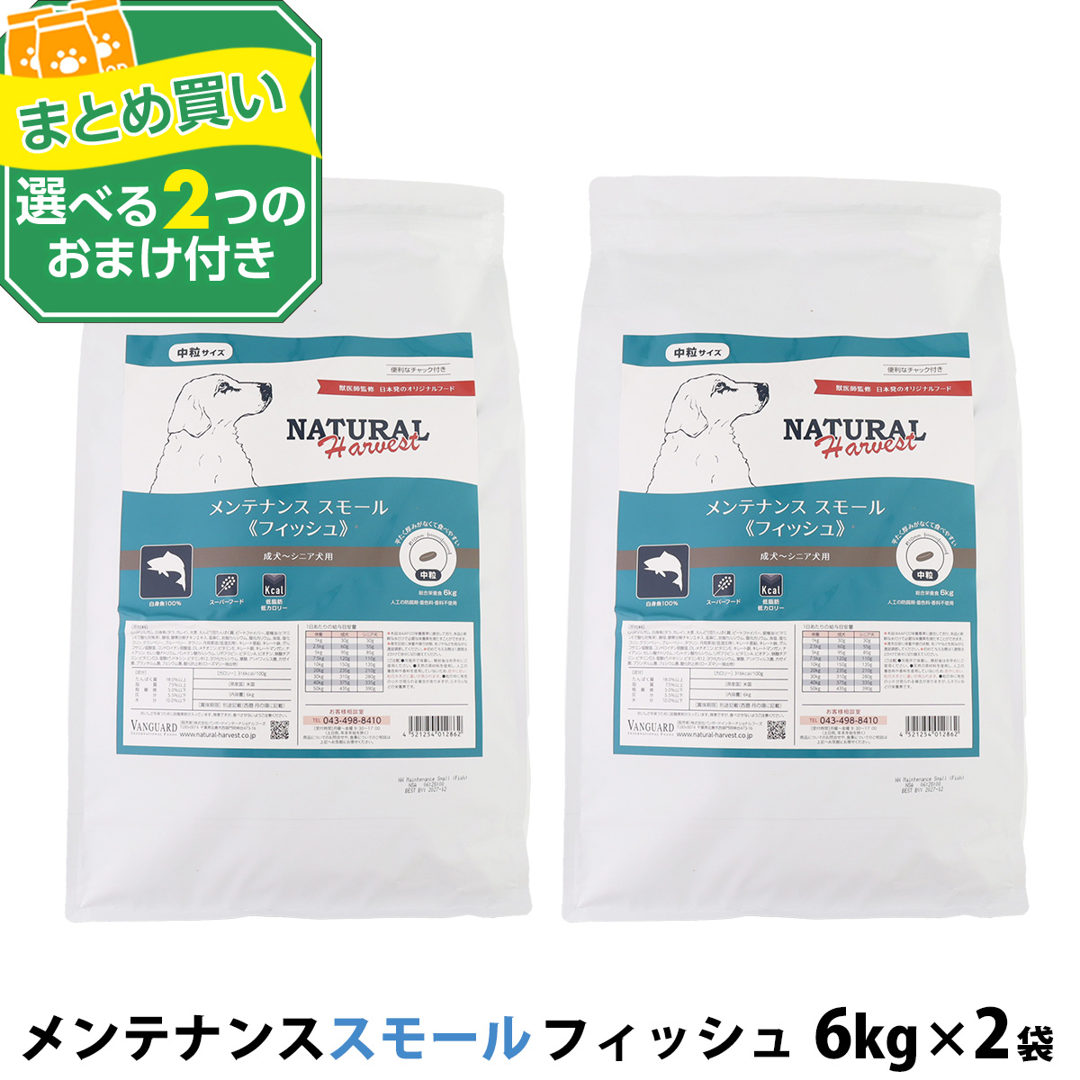 (パッケージ変更済)(選べる2つのおまけ付き)ナチュラルハーベスト メンテナンススモール フィッシュ 6kg×2袋 中粒 犬 魚 ドッグフード 成犬 シニア
