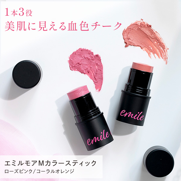 1本で、チーク、アイシャドー、リップにもお使い頂けるカラースティック。高濃度エルゴチオネインをはじめお肌に潤いを与える美容成分を70%以上配合。天然由来色素※を使用したカラー〔ローズピンク〕〔コーラルオレンジ〕は肌馴染みがよく、自然な血色感で肌を明るく美しい印象へ導きます。※自然由来の意※マイカ、酸化チタン、水酸化Al、ステアリン酸、酸化鉄、カルミン商品名:チーク アイシャドウ リップ アイメイク メイク 1本3役 エミルモアM カラースティック「関連キーワード」30代 40代 50代 60代 化粧 人気 ランキング おすすめ