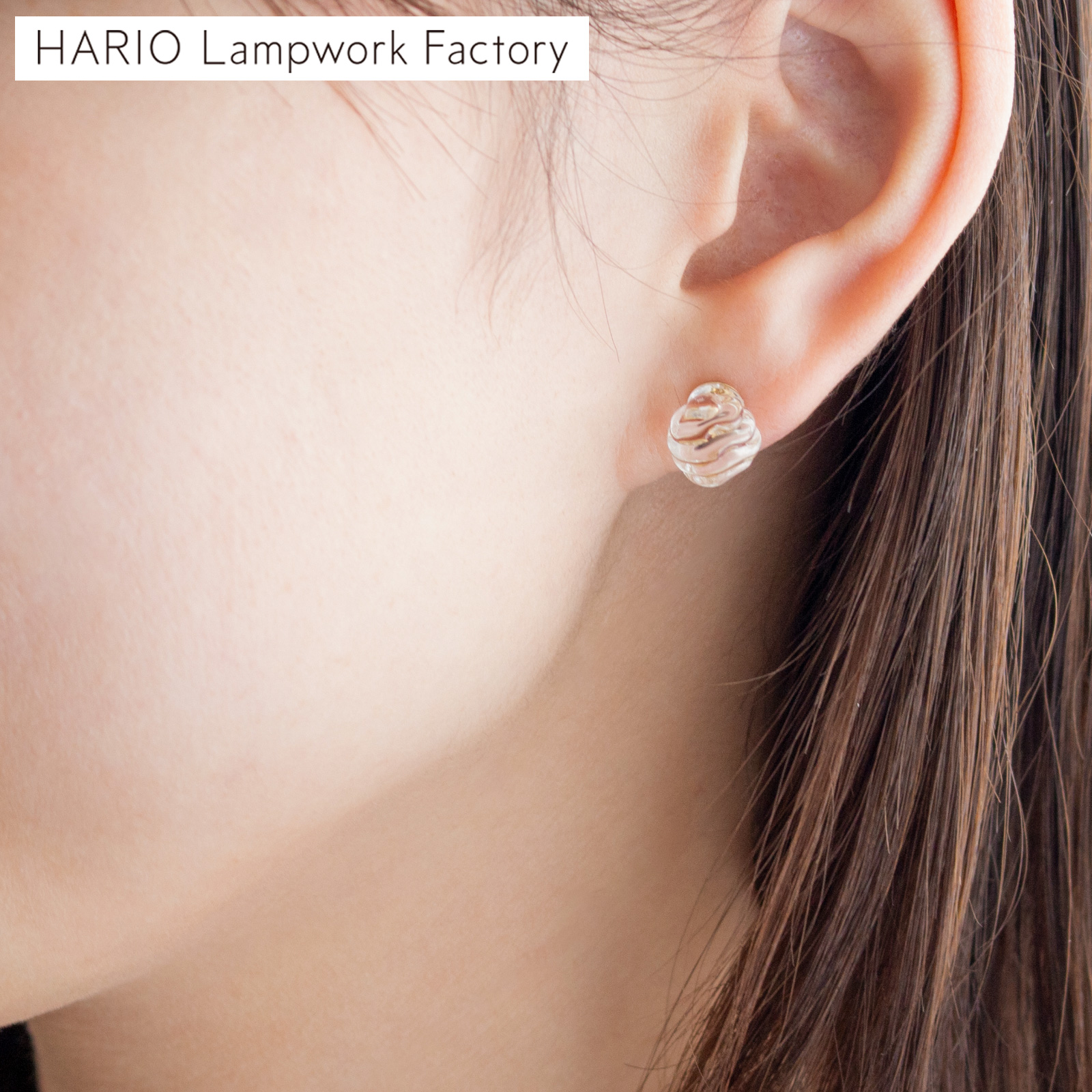 ハリオ ピアス ウェーブショコラ ガラス製 HARIO Lampwork Factory 小ぶり 手作り 日本製 ハリオランプワークファクトリー