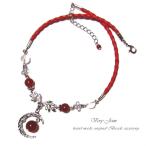 【手作り】天然石 革紐チョーカー 三日月トップの中と両サイドにパワーストーン“レッドアゲート”を。oO深みのある渋い赤の天然石“レッドアゲート”と透き通るほんのりペールピンクの天然石“マダガスカルローズクォーツ”。アメリカンピューターチャームの繊細な月と真っ赤なチョーカーをおつくりいたしました。編み込みフェイクレザーコードも真っ赤に。スタイリッシュな大人のチョーカー“月の雫”です(*^_^*) *使用天然石レッドアゲート(ラウンド4・8mm。月の中は10mm)マダガスカルローズクオーツ(ラウンド 8mm)【Neck Size】全長:約35cm + アジャスター 5cm 【Base Color】銀色