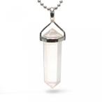 ◆パワーストーンの理想系と言われる、ダブルポイントカットです。 尖った石の両端から放出されるエネルギーの循環効率が最も良い形といわるパワーストーンの定番形の柔らかな幸運カラーのピンク色が特徴のペンダントです。 パワーストーン愛好家が愛してやまないポイントペンダントは、シャープなデザインとやさしい色合いで幸せの予感を感じさせてくれます。◆意味…ローズクォーツのエネルギーをより高めた効果をもつとされ、出会い、恋愛、結婚まで、愛を育てるサポートをしてくれるといわれています。 また、女性性を高めて、内面の美を輝かせ、恋愛成就に絶大なパワーを発揮するといわれています。 別名を「ラブストーン」と呼ばれるローズクォーツの効果は、失恋の傷にもおすすめです。◆スターローズクオーツ…ローズクオーツより透明度が高く金紅石の針状結晶を含んだスター効果のある部分で、幻想的なピンクカラーを放ちます。 恋愛運を上昇させるといわれ、別名を「ラブストーン」と呼ばれています。