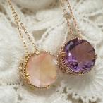 カラーストーン(アメシスト・ローズクオーツ)ローズカットペンダント カクテル チェーン付 PT900 K18 K10対応 誕生石 2月 春色ピンク