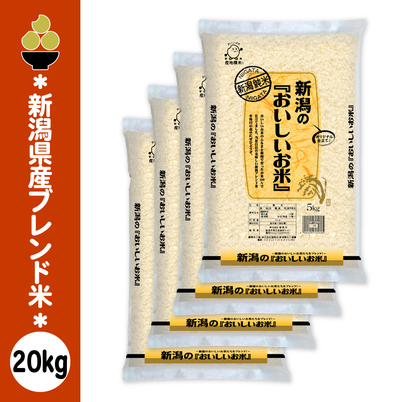 おいしいお米のふるさと新潟で育ったお米100%で仕立てました。当社自信の美味しい新潟ブレンド米を毎日の食卓にぜひどうぞ。名称:精米産地:新潟県品種:ブレンド米使用割合:複数原料米単品容量:20kg(5kg x 4袋)精米時期:商品に印字販売者:株式会社堀商店