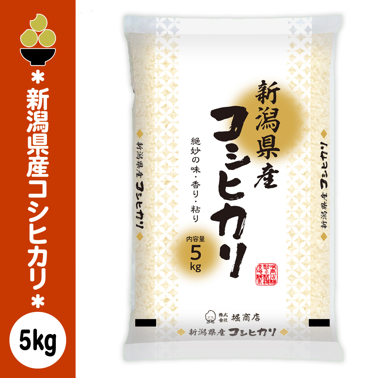 新潟産コシヒカリは、日本を代表するブランド米。昼夜の寒暖差がある気候と、雪解け水に育まれた豊かな土壌が、しっかりとした粘りと上品な甘みを生み出します。炊き上がりは艶やかで香り高く、冷めても美味しさが持続。毎日の食卓はもちろん、和食やお弁当にも最適なお米です。名称:精米産地:新潟県品種:コシヒカリ (こしひかり)使用割合:単一原料米単品容量:5kg(5kg x 1袋)精米時期:商品に印字販売者:株式会社堀商店
