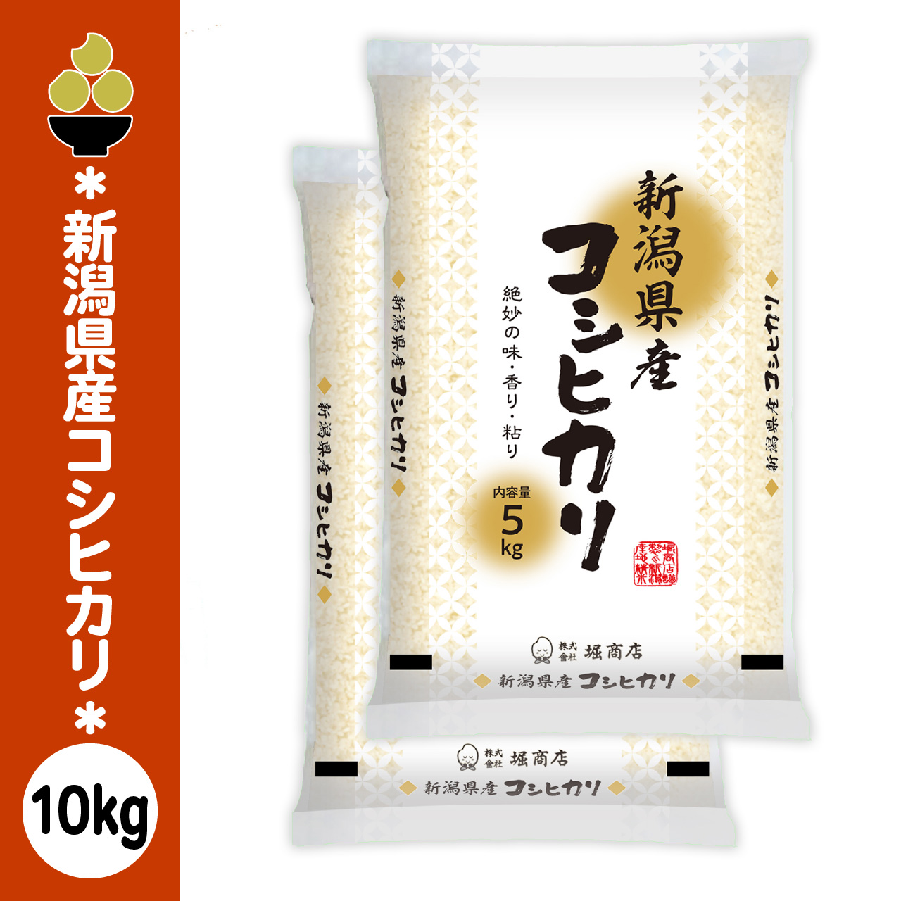 新潟産コシヒカリは、日本を代表するブランド米。昼夜の寒暖差がある気候と、雪解け水に育まれた豊かな土壌が、しっかりとした粘りと上品な甘みを生み出します。炊き上がりは艶やかで香り高く、冷めても美味しさが持続。毎日の食卓はもちろん、和食やお弁当にも最適なお米です。名称:精米産地:新潟県品種:コシヒカリ (こしひかり)使用割合:単一原料米単品容量:10kg(5kg x 2袋)精米時期:商品に印字販売者:株式会社堀商店