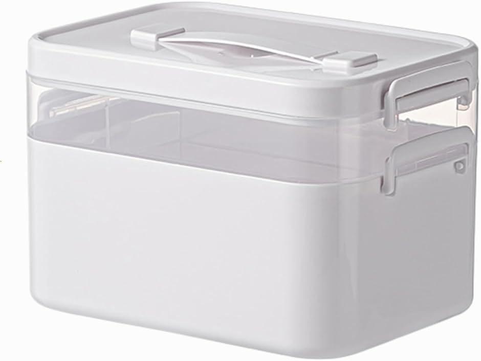 救急箱 大容量 おしゃれ 大きい 中身 見やすい 薬箱 常備薬 災害用 (ホワイト, 高さ16cmx横幅24cmx奥行16.5cm)