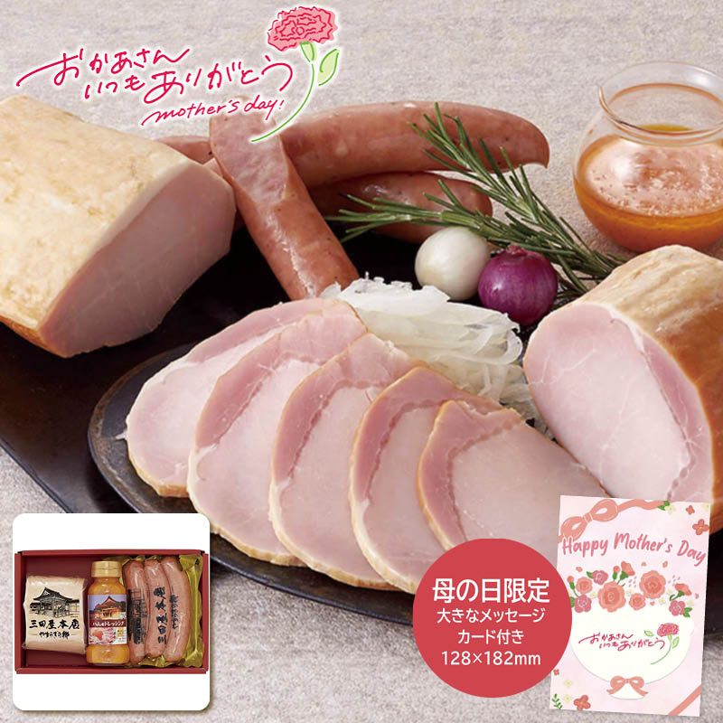 「母の日に、三田屋本店の極上ハムを。」母の日 三田屋本店ロースハム詰合せ<おすすめポイント>1.特別な日の食卓を華やかに演出2.職人の技が光る贅沢な味わい3.おつまみやディナーに最適な一品母の日 三田屋本店ロースハム詰合せは、三田屋本店のロースハム詰合せは、職人の伝統製法で旨味が詰まったハム。自宅ディナーやパーティーに最適で、ギフトにもおすすめ。おつまみや特別な料理として楽しめます。母の日 三田屋本店ロースハム詰合せは、プレゼント、マイギフトとしてもおすすめです。