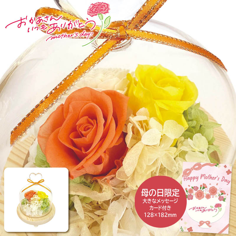 母の日 プレゼント 2026 母の日 ハートガラスドーム オレンジ 母の日ギフト 母の日 プリザーブドフラワー 花 (#1853-646)