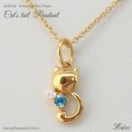ネックレス レディース ブルートパーズ k18ゴールド 18金 ネコ ペンダント 猫 キャット母の日 誕生日 プレゼント ギフト 母の日