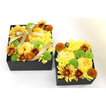 母の日ギフト!イエローボックスフラワー母の日限定ギフト!イエローの小花を集めたボックスフラワーです。
