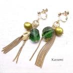 チェコビーズの緑のイヤリング 【Kasumi〜かすみ〜】 アクセサリー/作家/ハンドメイド