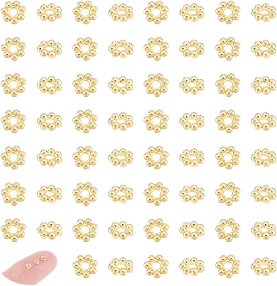 80個 フラワービーズ3mm ゴールド スペーサービーズ 菊座 花座 ステンレスビーズ メタルビーズ 金属ビーズ 光沢ビーズ MDM(3mm)