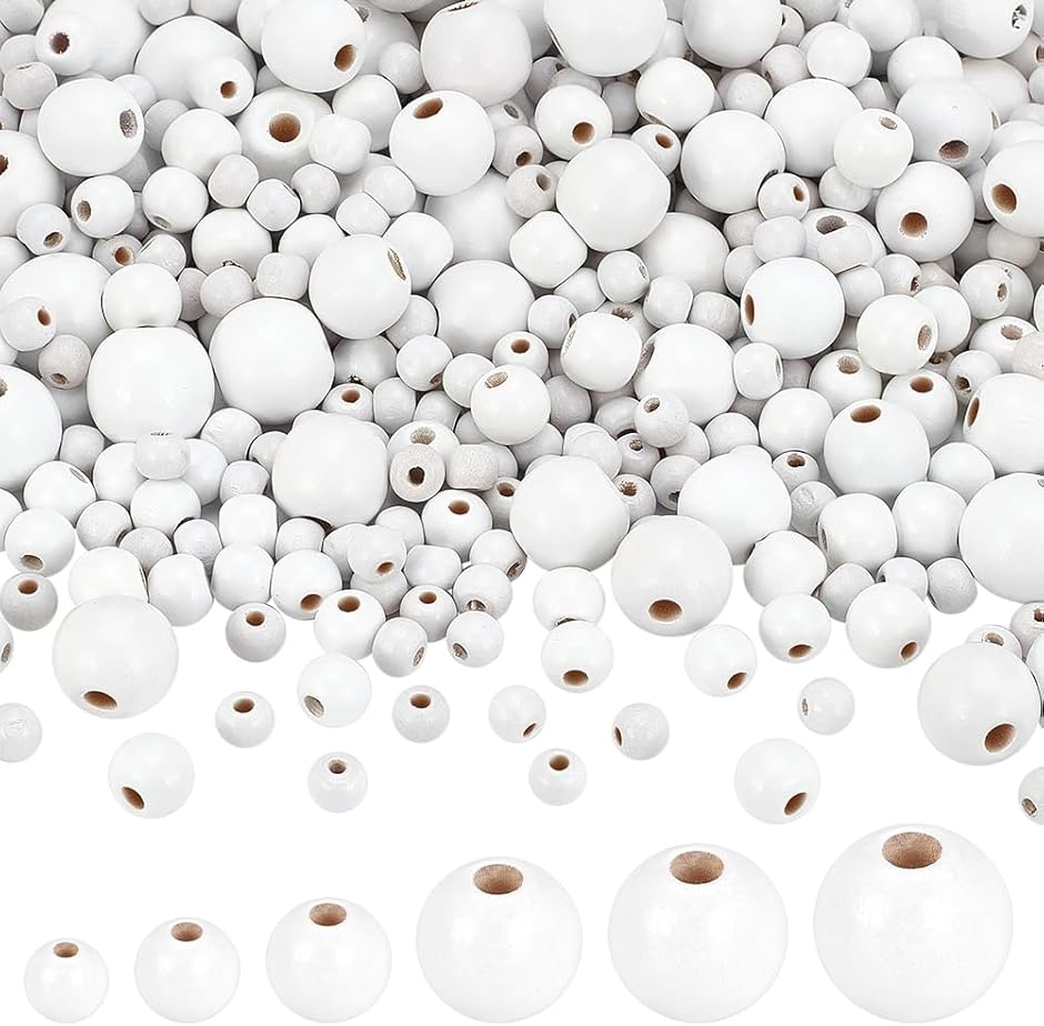 760個 6サイズ ホワイト木製ビーズ 白い 天然木ビーズ ラウンド木製クラフトビーズ ルース スペーサービーズ 大穴ビーズ 農家 DIY MDM