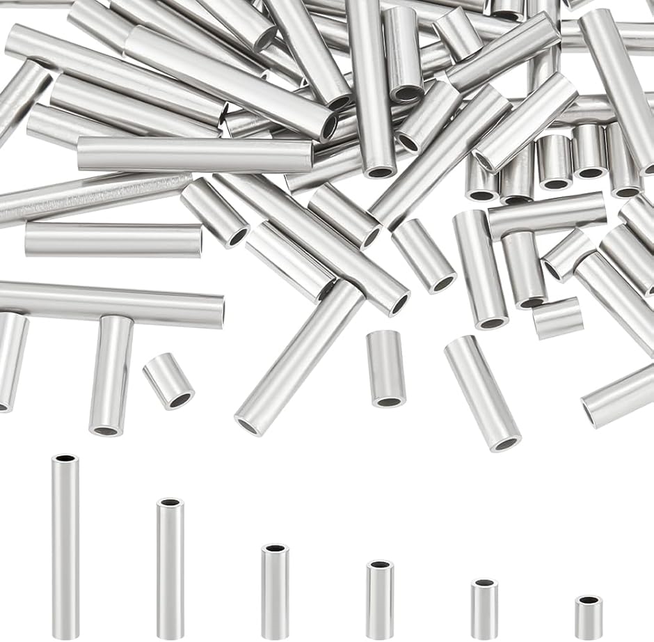 72個 6サイズ チューブビーズ ステンレスビーズ コラムビーズ 管状ビーズ スペーサービーズ パイプビーズ MDM(ステンレススチールカラー)