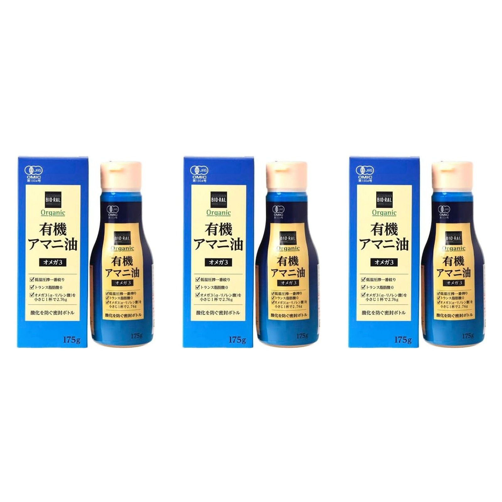 有機アマニ油 175g ビオラル×3個 アマニ油 オメガ3 健康 オーガニック JAS認証 圧搾
