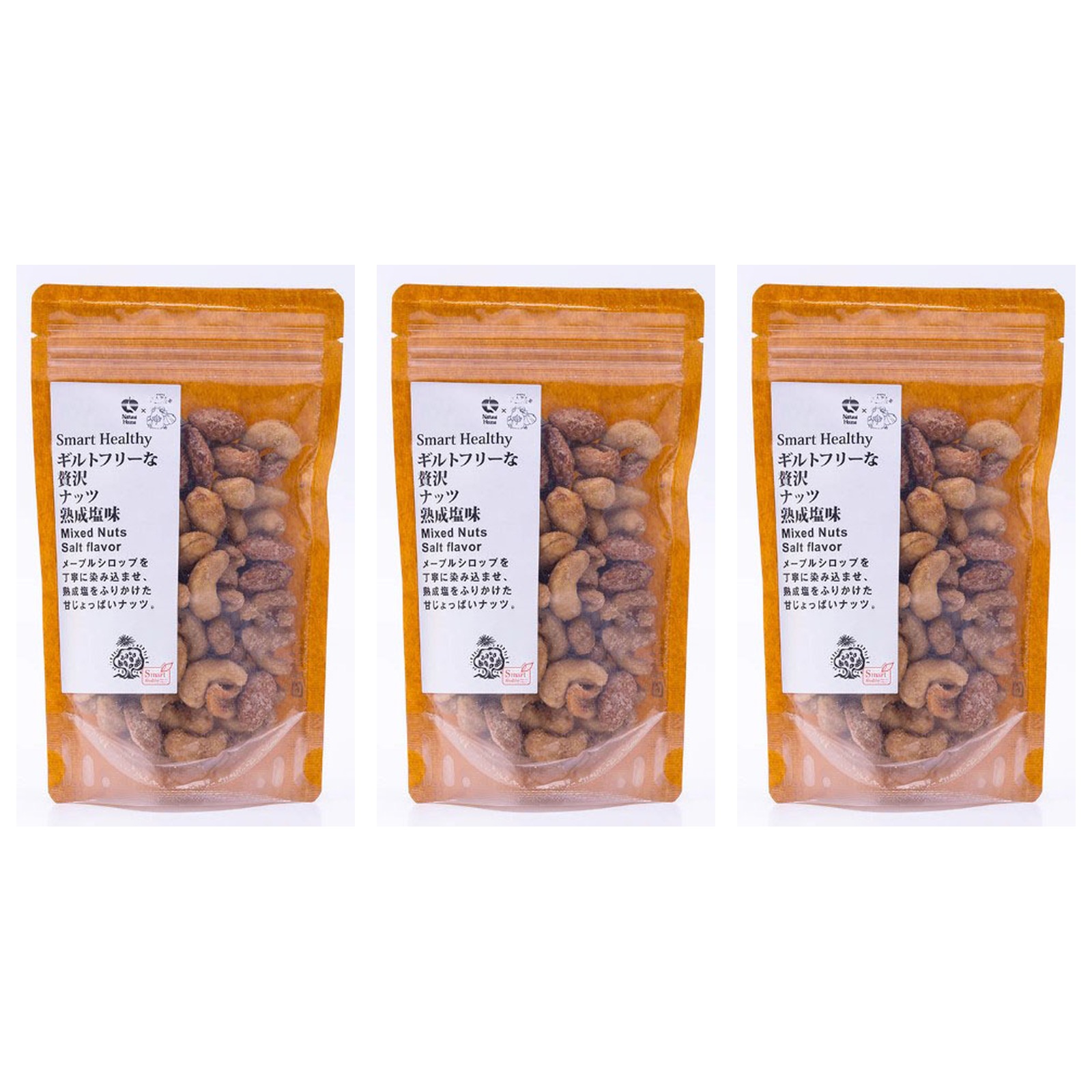 ×KYOTO MAPLE WORLD ギルトフリーな贅沢ナッツ 熟成塩味 1袋135g×3個 ヴィーガン グルテンフリー クルミ アーモンド メープルシロップ