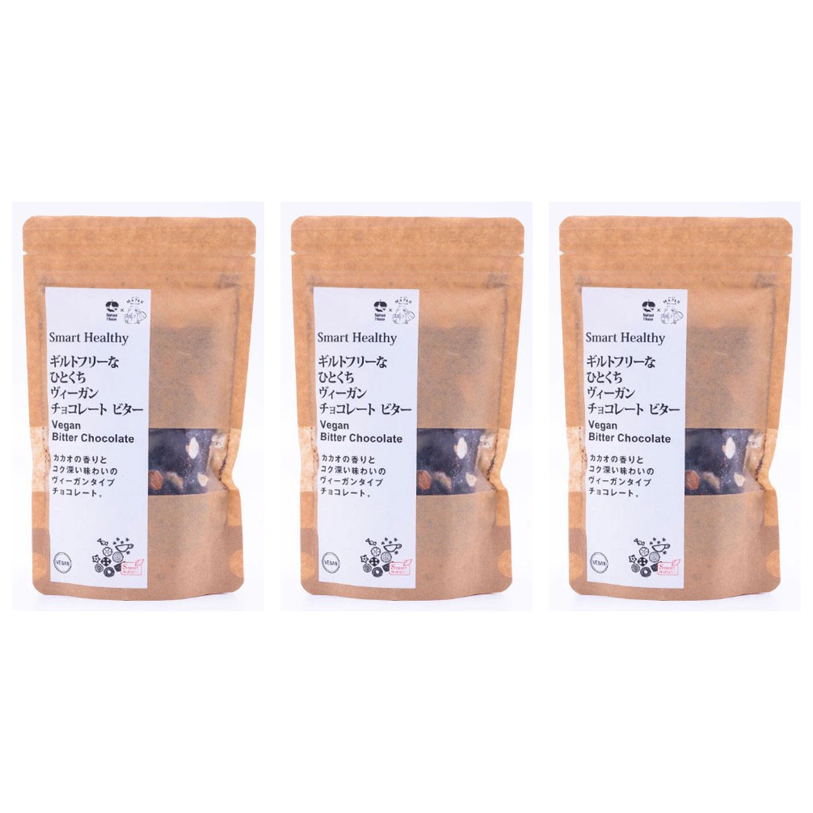 ×KYOTO MAPLE WORLD ギルトフリーなひとくちヴィーガンチョコレート ビター 1袋100g×3個 グルテンフリー ちょこ おやつ カカオ