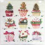 C-300 3枚 ペーパーナプキン クリスマスカップケーキ 白地[paper+design]ペーパープラスデザインデコパージュ・紙ナプキン・Christmas