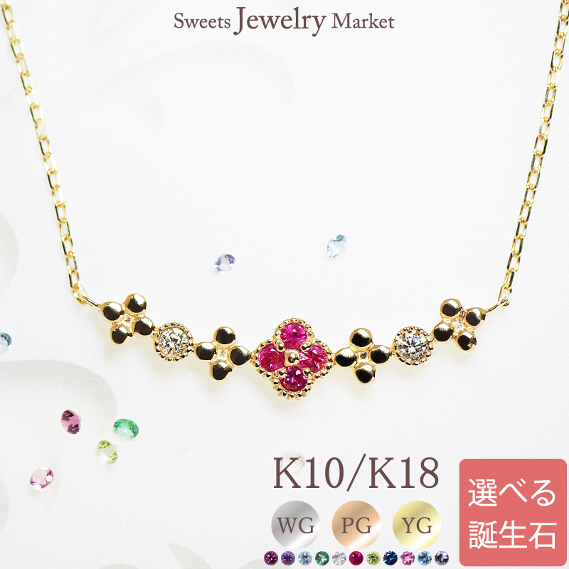 ネックレス 誕生石 バースストーン プチ フラワー 花 レディース 女性 彼女 誕生日 記念日 プレゼント ギフト 18金 10金 18K 10K 金属アレルギー 対応 安心