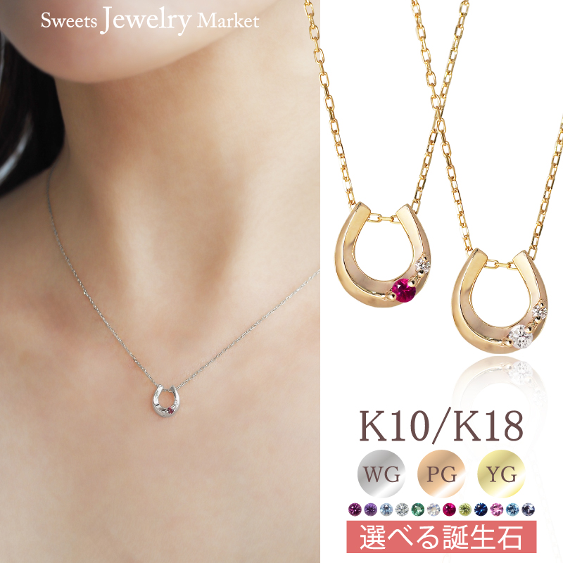 ネックレス 馬蹄 誕生石 ダイヤモンド レディース 女性 誕生日 記念日 プレゼント ギフト ホースシュー 18金 10金 K18 金属アレルギー 対応 安心 ピンクゴールド