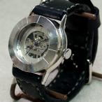 [制作終了]手作り腕時計 ハンドメイド 渡辺工房 手巻き式 ジャンボシルバー 手縫いベルト/アンティーク調/スチームパンク