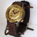 手作り腕時計 ハンドメイド 渡辺工房 手巻き式 裏スケルトン Explorer ジャンボブラス/アンティーク調/スチームパンク