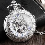 懐中時計 ヴィンテージ シルバー スチームパンク 機械式 懐中時計 ネックレスチェーンスケルトン Silver