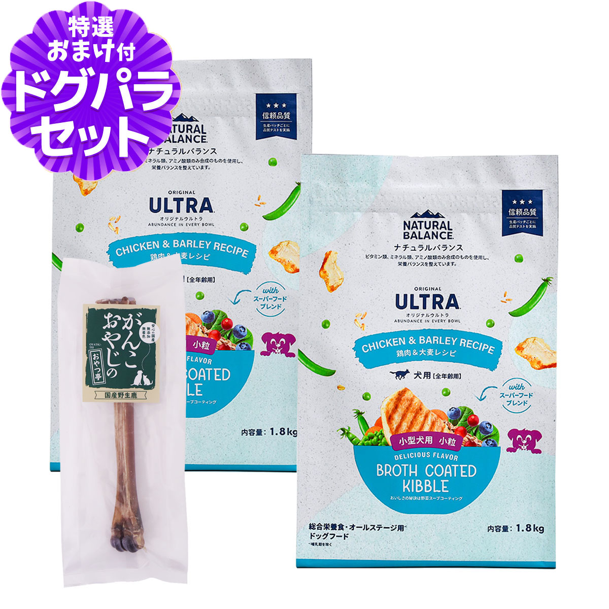 ナチュラルバランス オリジナルウルトラ 犬用 全年齢用 鶏肉&大麦 小粒 1.8kg×2袋+国産鹿デンタルボーン 1本入り ドッグフード 犬 ドライ