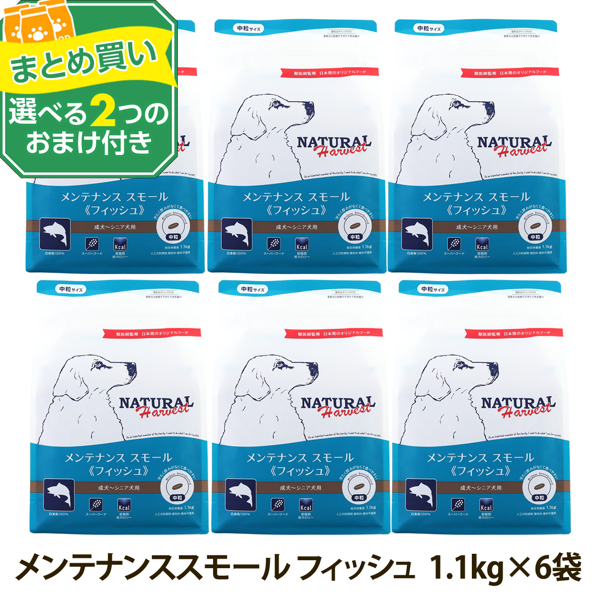 (順次パッケージ変更)(選べる2つのおまけ付き)ナチュラルハーベスト メンテナンススモール フィッシュ 1.1kg×6袋 中粒 犬
