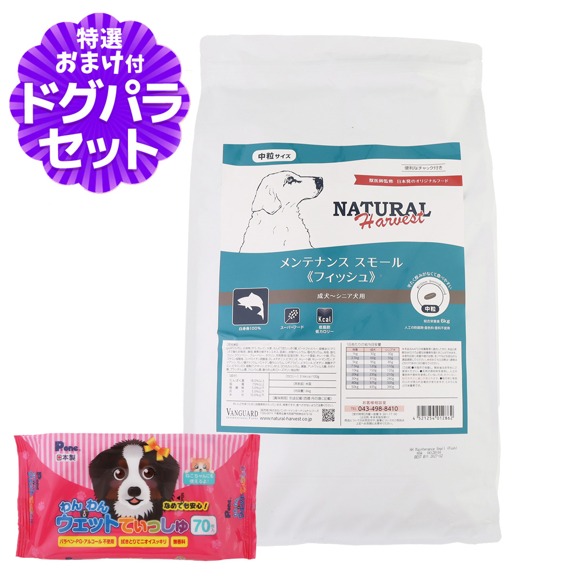(パッケージ変更済)ナチュラルハーベスト メンテナンススモール フィッシュ 6kg+わんわんウエットてぃっしゅ 1個