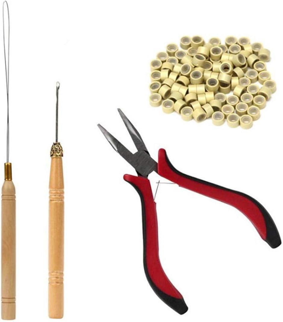 エクステ用ペンチ ニードル 糸通し エクステ用チップ 4点セット(blond黄色チップ)
