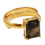 天然石 リング 指輪 フリーサイズ スクエアカット スモーキークォーツ ゴールドカラー 約7x9mm
