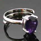 天然石 リング 指輪 フリーサイズ ティアドロップカット アメジスト シルバーカラー 約7x11mm