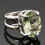 天然石 リング 指輪 フリーサイズ オーバルカット グリーンアメジスト シルバーカラー 約12x16mm