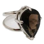 天然石 リング 指輪 フリーサイズ ティアドロップカット スモーキークォーツ シルバーカラー 約8x12mm