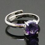 天然石 リング 指輪 フリーサイズ ラウンドカット アメジスト シルバーカラー 約7mm