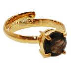 天然石 リング 指輪 フリーサイズ ラウンドカット スモーキークォーツ ゴールドカラー 約7mm