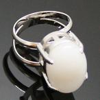 天然石 リング 指輪 フリーサイズ オーバルカボション スノークォーツ シルバーカラー 約13x18mm