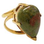 天然石 リング 指輪 フリーサイズ ティアドロップカボション ユナカイト ゴールドカラー 約14x22mm