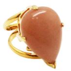 天然石 リング 指輪 フリーサイズ ティアドロップカボション サンストーン ゴールドカラー 約14x22mm