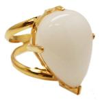 天然石 リング 指輪 フリーサイズ ティアドロップカボション スノークォーツ ゴールドカラー 約14x22mm