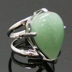 天然石 リング 指輪 フリーサイズ ティアドロップカボション アベンチュリン シルバーカラー 約14x22mm