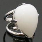 天然石 リング 指輪 フリーサイズ ティアドロップカボション スノークォーツ シルバーカラー 約14x22mm