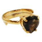 天然石 リング 指輪 フリーサイズ ハートカット スモーキークォーツ ゴールドカラー 約10mm