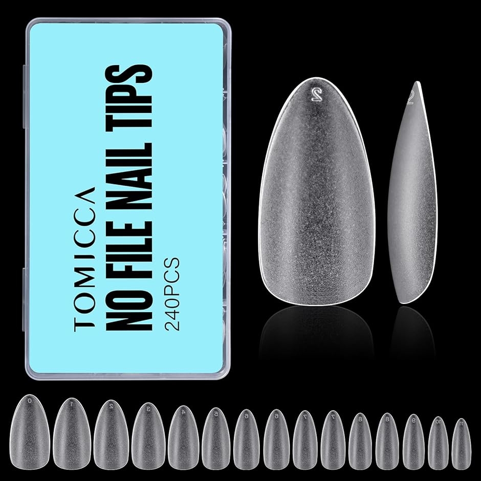ネイルチップ サンディング済みネイルチップ フルカバー プレーンチップ クリアチップ 練習用 業務用 (240枚-アーモンドM)