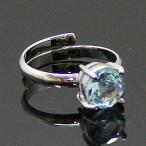 天然石 リング 指輪 フリーサイズ ラウンドカット ブルートパーズ シルバーカラー 約7mm