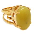天然石 リング 指輪 フリーサイズ オーバルカボション オリーブジェイド ゴールドカラー 約17x22mm