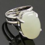 天然石 リング 指輪 フリーサイズ オーバルカボション ニュージェイド シルバーカラー 約13x18mm