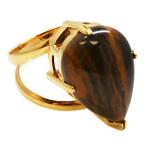 天然石 リング 指輪 フリーサイズ ティアドロップカボション タイガーアイ ゴールドカラー 約14x22mm