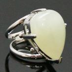 天然石 リング 指輪 フリーサイズ ティアドロップカボション ニュージェイド シルバーカラー 約14x22mm
